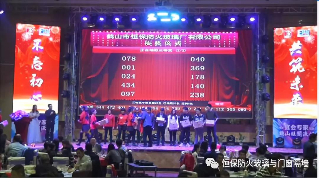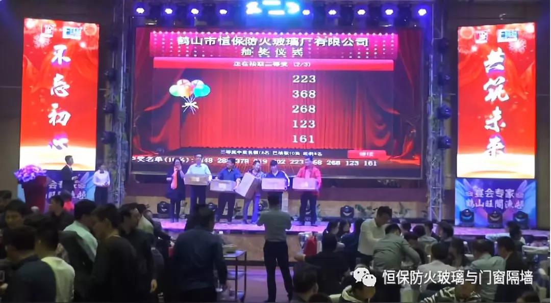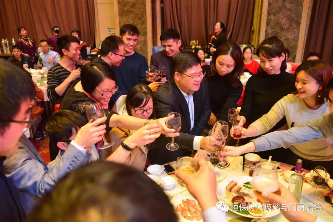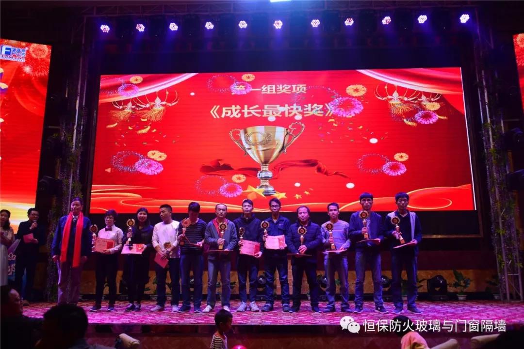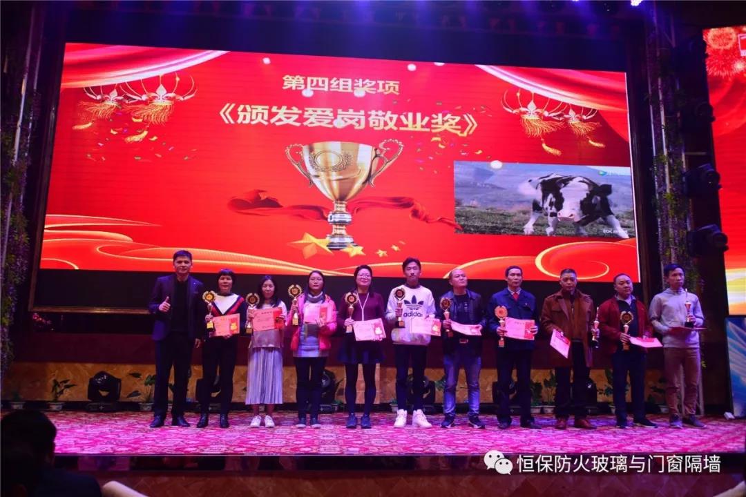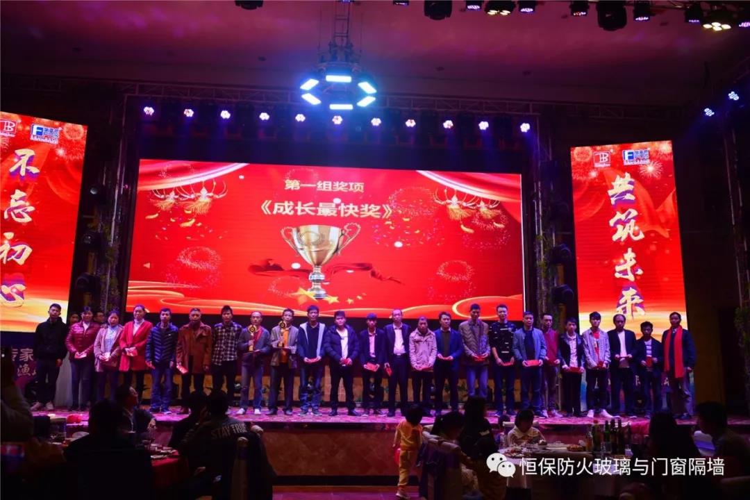 19:30分,恒保年會在鼓舞飛揚中拉開了帷幕,首先是恒保總經(jīng)理陳沃林先生做年終致辭,陳總回顧了2018年所取得的成績與不足,并提出了2019年恒保要全力以赴,不忘初心,繼續(xù)奮斗,再創(chuàng)佳績的戰(zhàn)略方針。2018年是恒??缭桨l(fā)展的一年。全體恒保家人,團結(jié)一心,艱苦奮斗,全力實現(xiàn)了公司既定的年度目標(biāo),同比各項重要指標(biāo)增長逾80%。2018年我們大力引進新設(shè)備,開發(fā)新產(chǎn)品10多項,產(chǎn)品通過國家檢測20多項 ,至此,恒保出品已擁有37個3C認證,158份檢驗報告,成為行業(yè)內(nèi)公認通過國家檢驗、認證最多的防火玻璃門窗企業(yè);2018年在行業(yè)各類權(quán)威獎項評比中,榮獲“全國鋁門窗幕墻展 年度星品獎”、榮獲“新玻網(wǎng) 門窗玻璃十強企業(yè)”、陳沃林總經(jīng)理榮獲鶴山市工商聯(lián)系統(tǒng)“工匠之星”稱號、陳沃林總經(jīng)理榮獲第五屆中國玻璃行業(yè)“玻璃工匠”稱號、榮獲第三屆建筑門窗金軒獎“最具創(chuàng)新力配套產(chǎn)品”、榮獲第三屆建筑門窗金軒獎“最具發(fā)展?jié)摿ζ髽I(yè)”、榮獲中國門窗幕墻行業(yè)“科技進步推動獎”等十多項獎項。2019年我們將持續(xù)優(yōu)化各部門管理,提高員工工作技能、提高生產(chǎn)管理水平、提高生產(chǎn)效率、提高綜合管理能力,減少物料損耗,減少出錯率。加強精密型材、新型防火門窗的開發(fā),滿足不同客戶的需求。2019年恒保上下一心、同心協(xié)力、不忘初心,共筑未來,為實現(xiàn)中國平安夢、世界平安夢繼續(xù)奮斗!