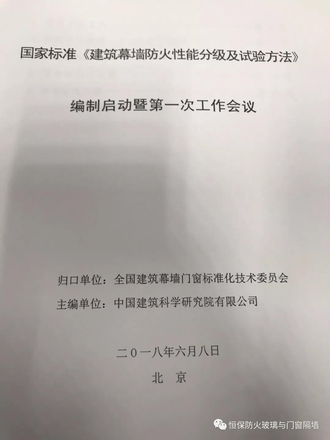全國(guó)建筑幕墻門(mén)窗標(biāo)準(zhǔn)化技術(shù)委員會(huì)秘書(shū)處劉會(huì)濤高級(jí)工程師代表標(biāo)委員會(huì)宣讀編制組名單,標(biāo)準(zhǔn)編制啟動(dòng)會(huì)圓滿(mǎn)結(jié)束。鶴山恒保陳沃林總經(jīng)理也應(yīng)邀參加了這次的國(guó)家標(biāo)準(zhǔn)編制。