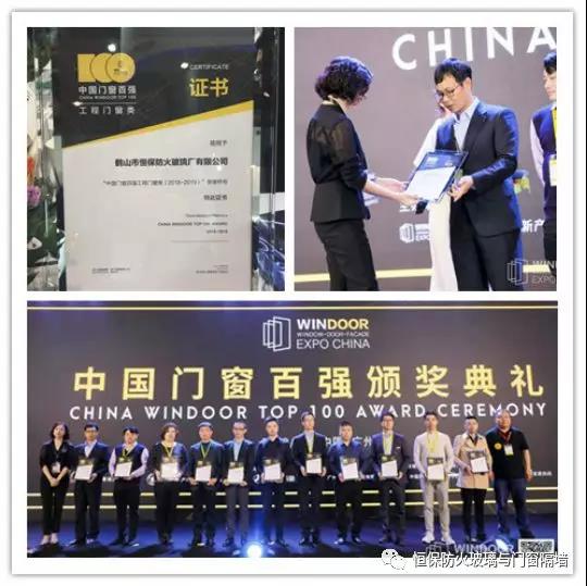同期3月5日上午,由鋁門窗幕墻新產(chǎn)品博覽會(huì)、中國(guó)房地產(chǎn)業(yè)與門窗幕墻聯(lián)盟、中國(guó)建筑金屬結(jié)構(gòu)協(xié)會(huì)鋁門窗幕墻委員會(huì)等單位聯(lián)合評(píng)審,經(jīng)過多家地產(chǎn)商和業(yè)主的選材經(jīng)驗(yàn)共享認(rèn)可,鶴山恒保公司獲得“中國(guó)門窗百強(qiáng)工程門窗類(2018-2019)榮譽(yù)稱號(hào)”。