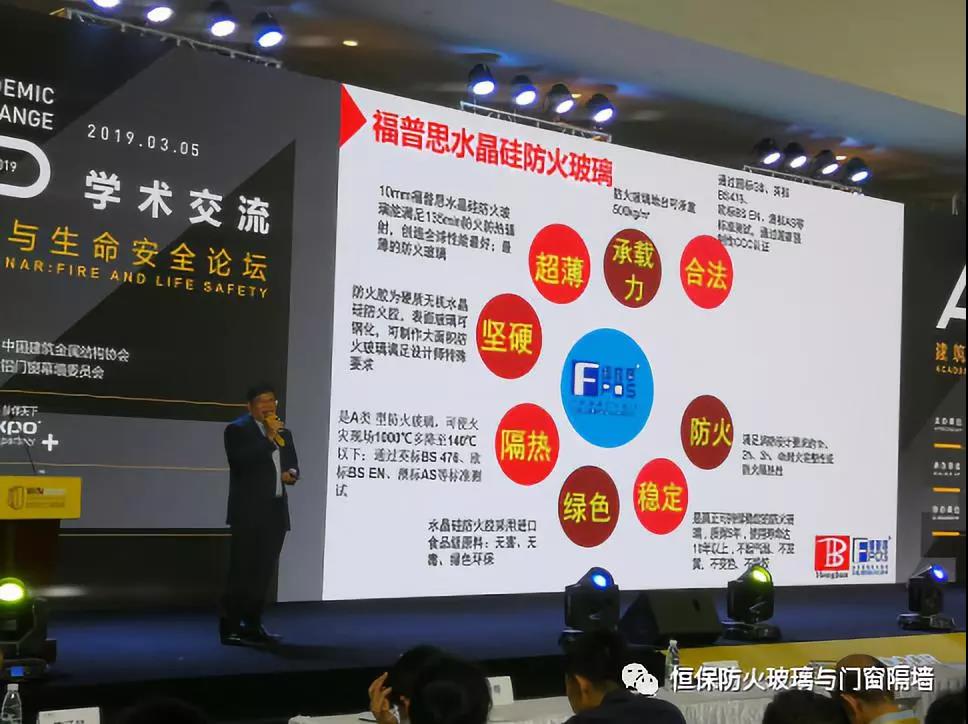 在這次展會(huì)中,恒保公司榮獲兩大獎(jiǎng)項(xiàng),獲各界客商對(duì)恒保的肯定和實(shí)力的彰顯。在第25屆鋁門窗幕墻新產(chǎn)品博覽會(huì)歡迎晚宴暨第5屆中國(guó)門窗幕墻創(chuàng)新星品獎(jiǎng)?lì)C獎(jiǎng)典禮中,鶴山恒保榮獲2019年度“創(chuàng)新新品獎(jiǎng)”。3月5日上午,陳沃林總經(jīng)理并在星品匯現(xiàn)場(chǎng)演講《CCC認(rèn)證超大甲級(jí)防火窗(地鐵高鐵控制室觀察窗)》。恒保GFC3020超大甲級(jí)防火窗,具有非常好的防火隔熱性能,完全滿足甲級(jí)防火窗的要求,且10年以上不發(fā)黃、不發(fā)白穩(wěn)定可靠。認(rèn)證尺寸寬3000mm高2000mm,是目前中國(guó)已獲國(guó)家檢驗(yàn)報(bào)告和CCC強(qiáng)制性認(rèn)證的單塊玻璃尺寸最大的防火窗;整窗都滿足防火完整性和隔熱性1.5小時(shí)的要求,既符合建筑設(shè)計(jì)防火規(guī)范條例,又滿足窗的通透性,美觀實(shí)用。完美解決了地鐵高鐵消防控制室超大甲級(jí)防火觀察窗合法化的問題,是地鐵高鐵等重要場(chǎng)所設(shè)備用房的防火觀察窗必選產(chǎn)品。