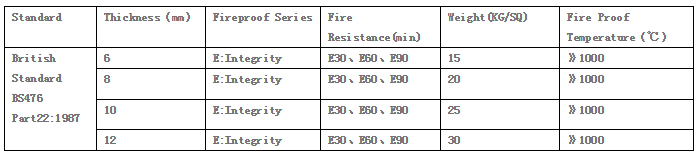 英標(biāo)系列單片防火玻璃技術(shù)參數(shù)如下